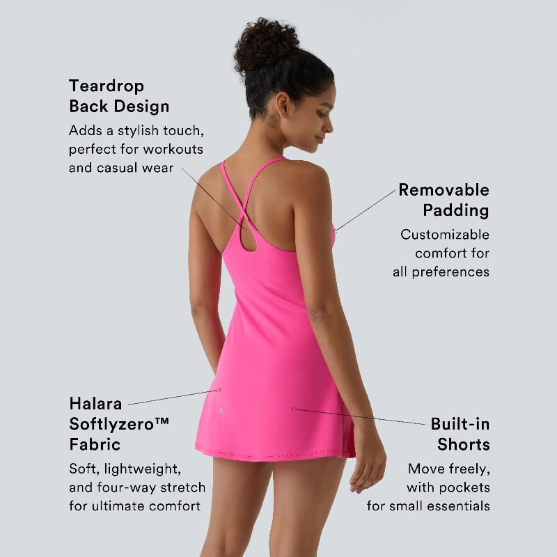 Hold deg tildekket og komfortabel med elastiske, innebygde shorts og avtagbare pads som gir støtte akkurat slik du vil ha det - fra du snurrer rundt på dansegulvet til du jager valpen i parken.
