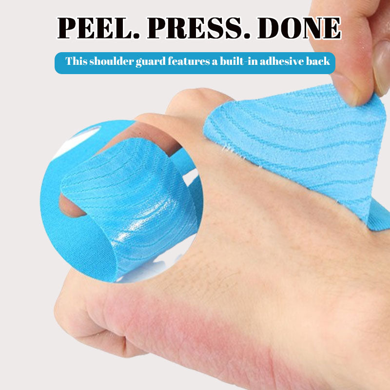 Denne skulderbeskyttelsen har en innebygd klebende bakside – bare trekk av og trykk på.