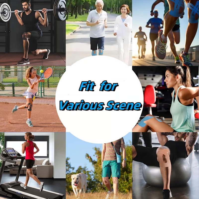 Sterk støtte og stabilitet: Kan gi sterk støtte og stabilitet for den festede posisjonen for å beskytte kneets muskelvev til en viss grad. Teipen vil effektivt forhindre deg fra sportsskader som knestammer under trening.
