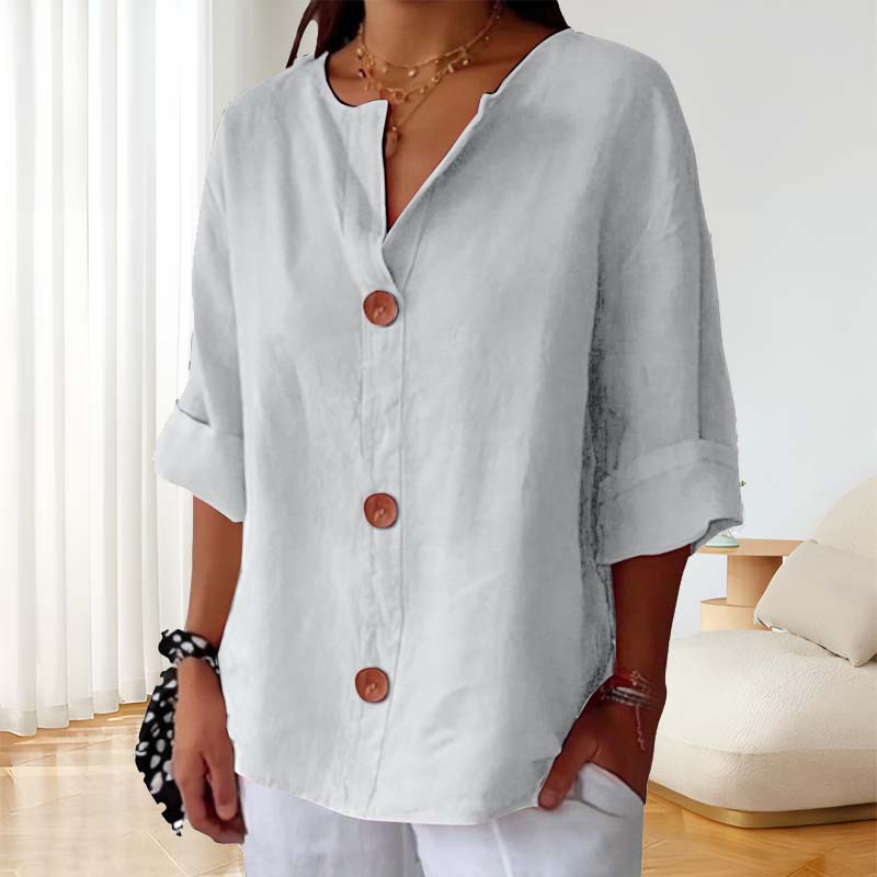 - 1 x Løs skjorte i bomull og lin med knappelukking🍃