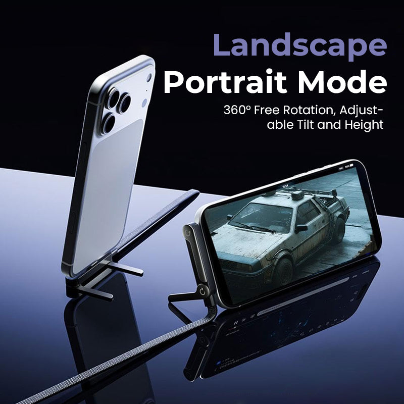 Se videoer, spill spill eller ha videosamtaler håndfritt! Det integrerte stativet brettes flatt for bærbarhet og utfoldes for å holde telefonen i både vertikal og horisontal retning.