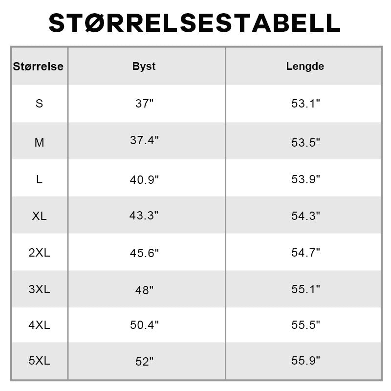 *Merk: Målene kan variere noe (0,5-1") på grunn av stoffets stretch og styling.