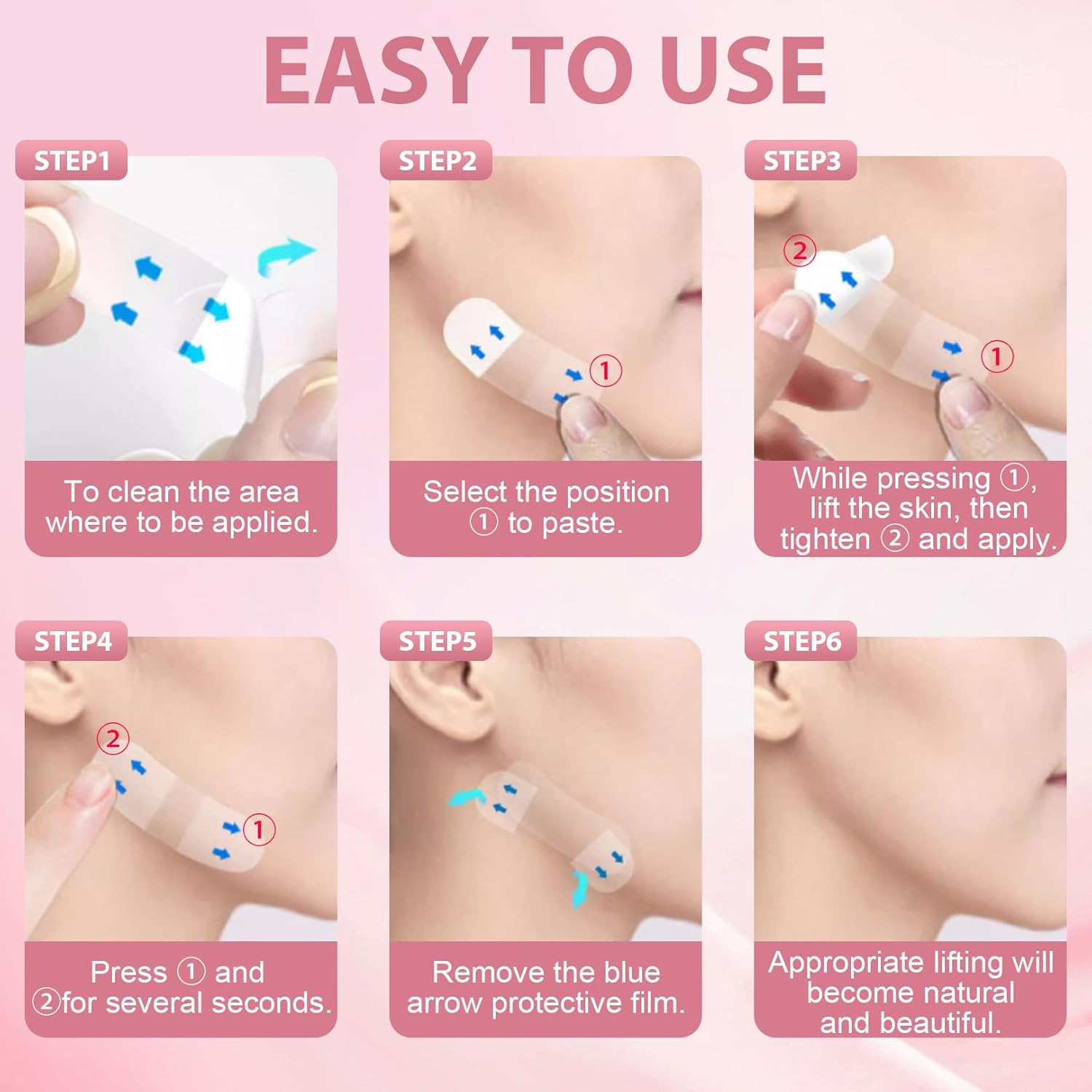 ❣️【Enkel å bruke】Bare legg den ene enden av ansiktsløftningsteipen på huden, trekk deretter huden 1 - 2 tommer bakover og trykk fast oppover for øyeblikkelige resultater! Sørg for at ansiktet er fritt for sminke eller olje før du påfører ansiktsløftteipen usynlig. Som en vennlig påminnelse vil det gjøre litt vondt når du trekker den av, så du kan varme den opp eller myke den opp med en sminkefjerner før du fjerner den.