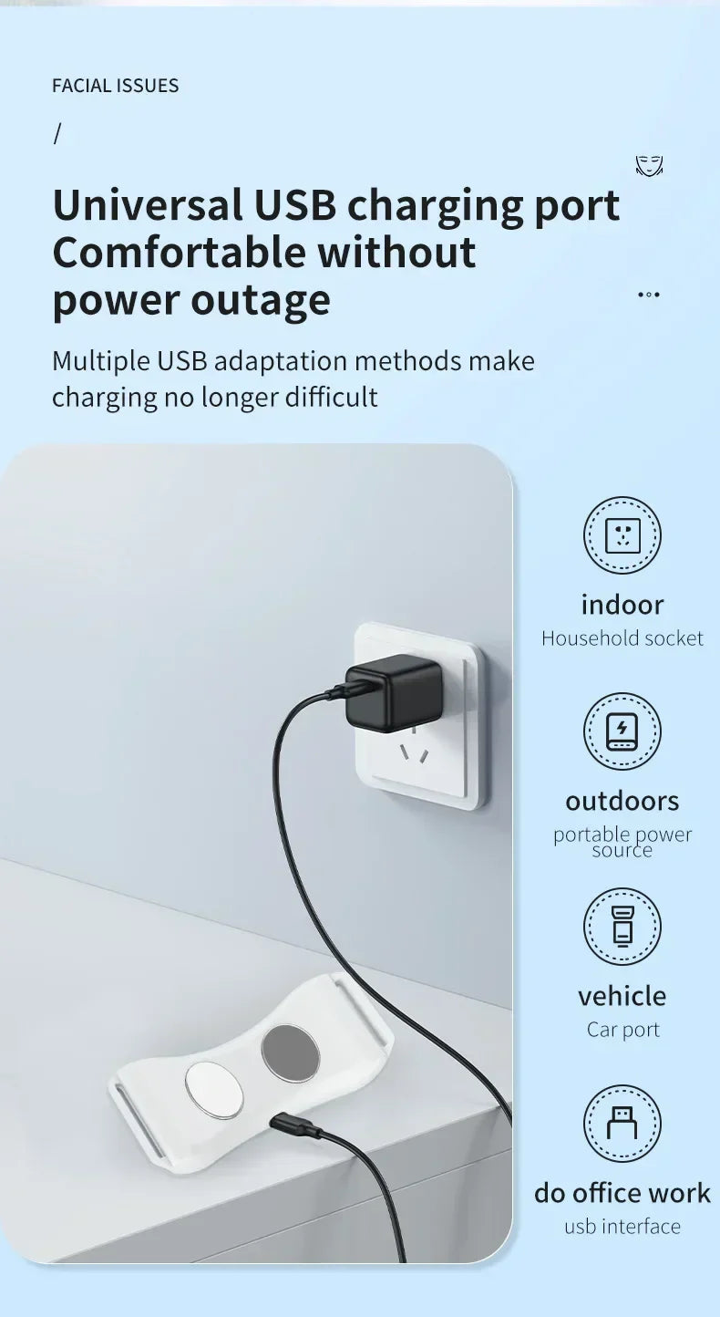 ✅ 5 eller 7 justerbare moduser Velg den perfekte innstillingen for hudens behov: - A-type : 5 sentrale EMS-moduser - B-type : 7 moduser totalt (inkluderer vibrasjon + varme)