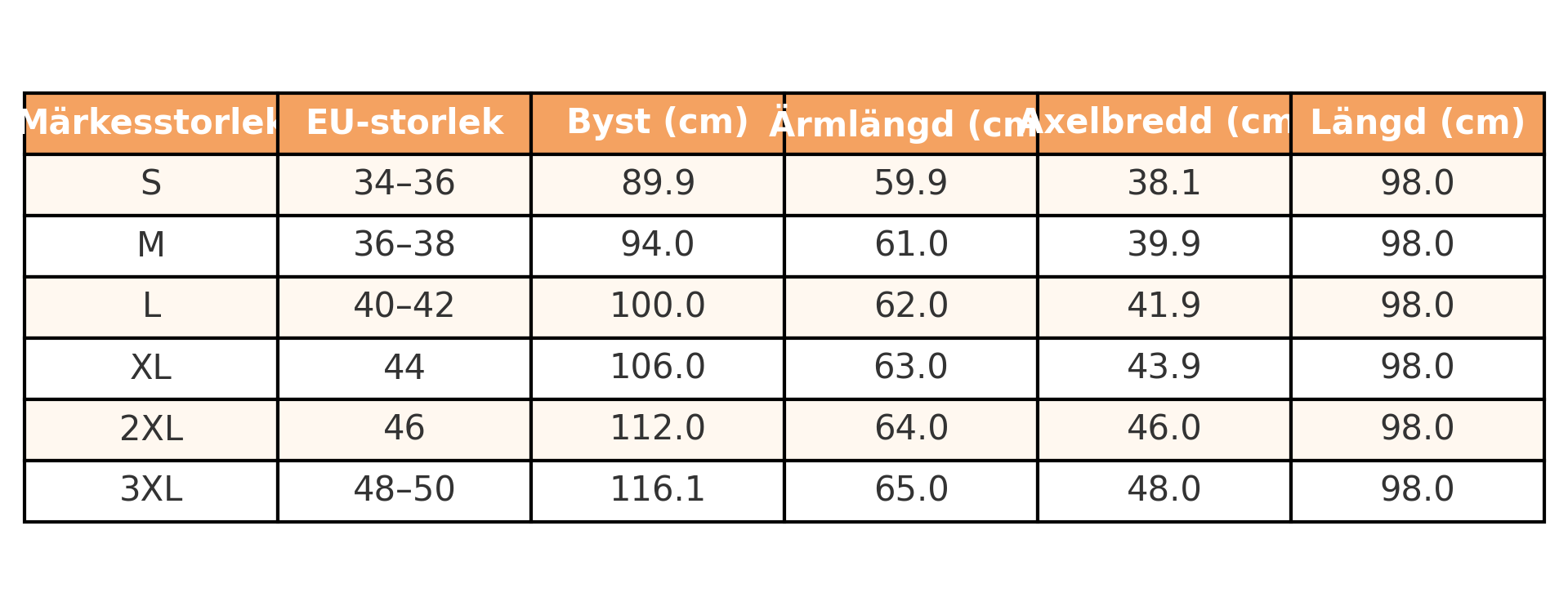 | Merkestørrelse | EU-størrelse | Byst (cm) |