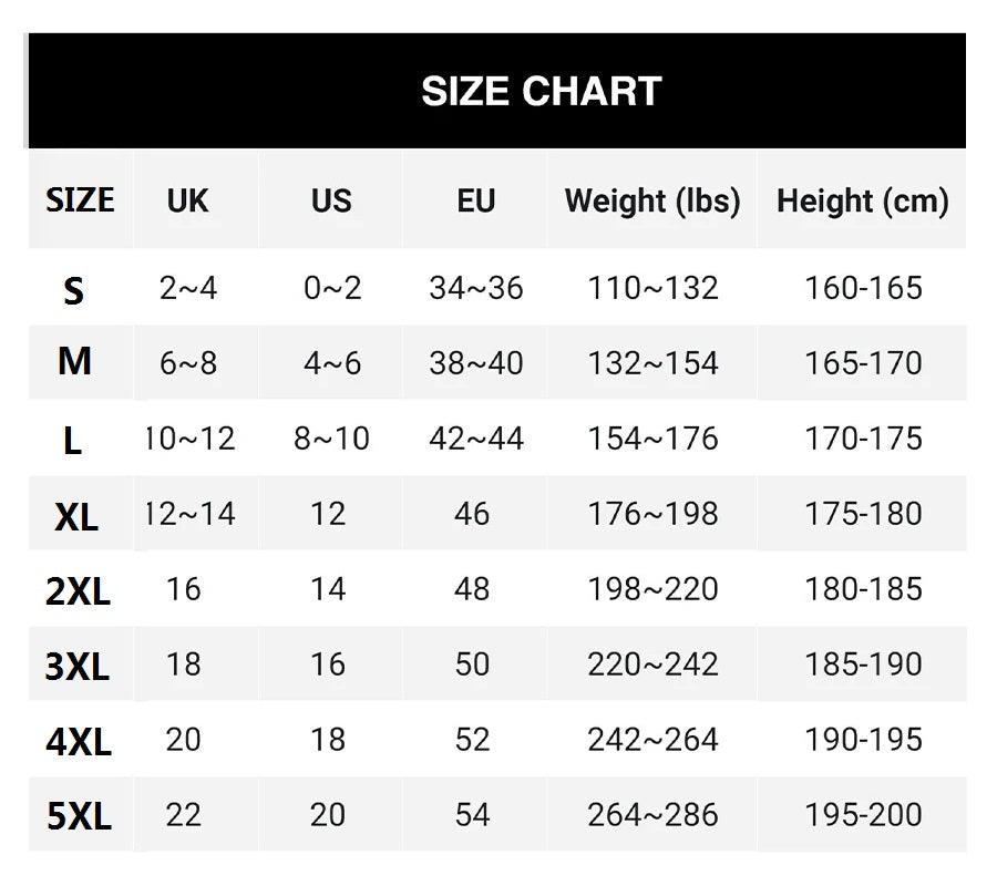 Størrelse: S, M, L, XL, 2XL, 3XL, 4XL, 5XL