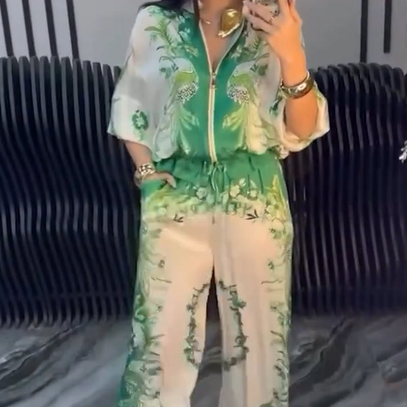 KOMFORTABEL PASSFORM MED STIL: Dette antrekket er designet med en avslappet kimono-topp med ermer og elastiske bukser i midjen, og sikrer komfort hele dagen uten at det går på bekostning av mote – perfekt for avslapning eller utflukter.
