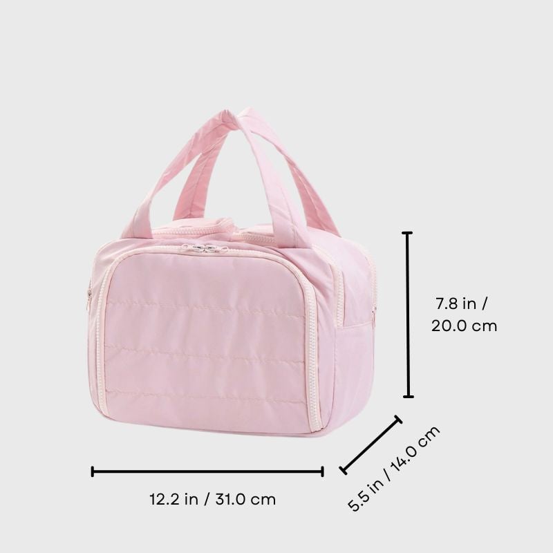 Det romslige og lette designet gjør den til den perfekte følgesvennen for å enkelt bære alle skjønnhetsproduktene dine.